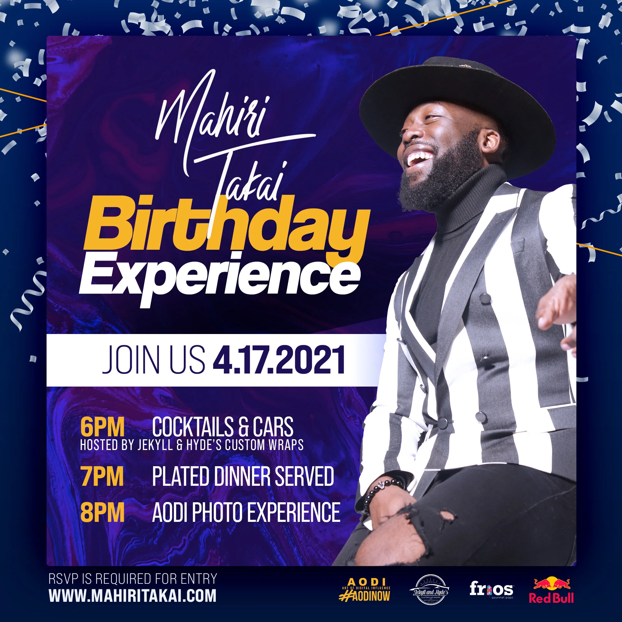 Apr 17 6:00 PM18:00 Mahiri Takai Birthday Experience Saturday, April 17, 2021 6:00 PM 10:00 PM 18:00 22:00 AODI (map) Google Calendar ICS View Event →